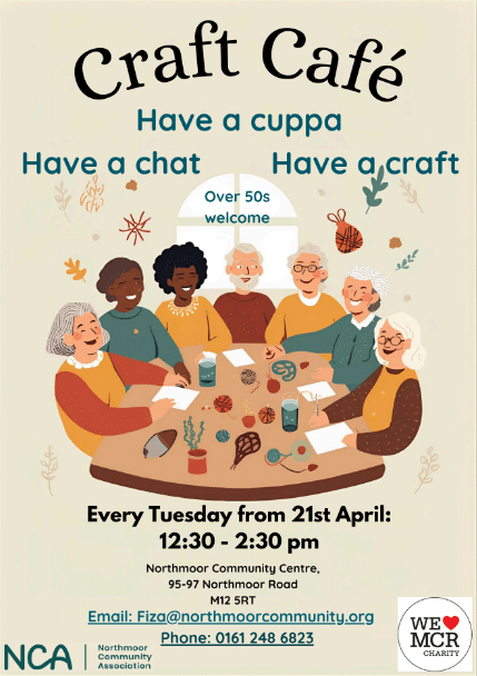 | Every Tuesday from 21st April, 12.30pm to 2.30pm at Northmoor Community Centre, 95-97 Northmoor Road, Longsight, Manchester, M12 5RT It’s FREE to attend. |
